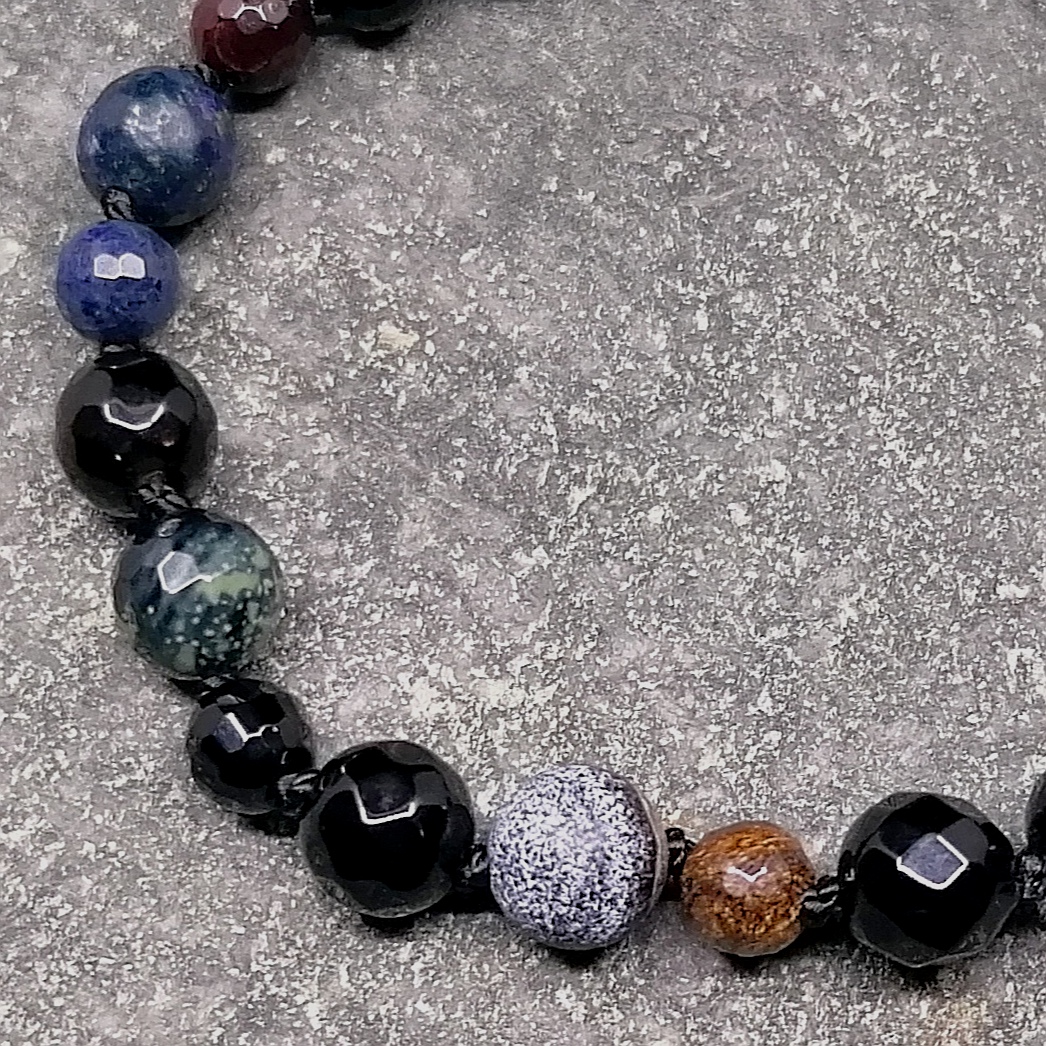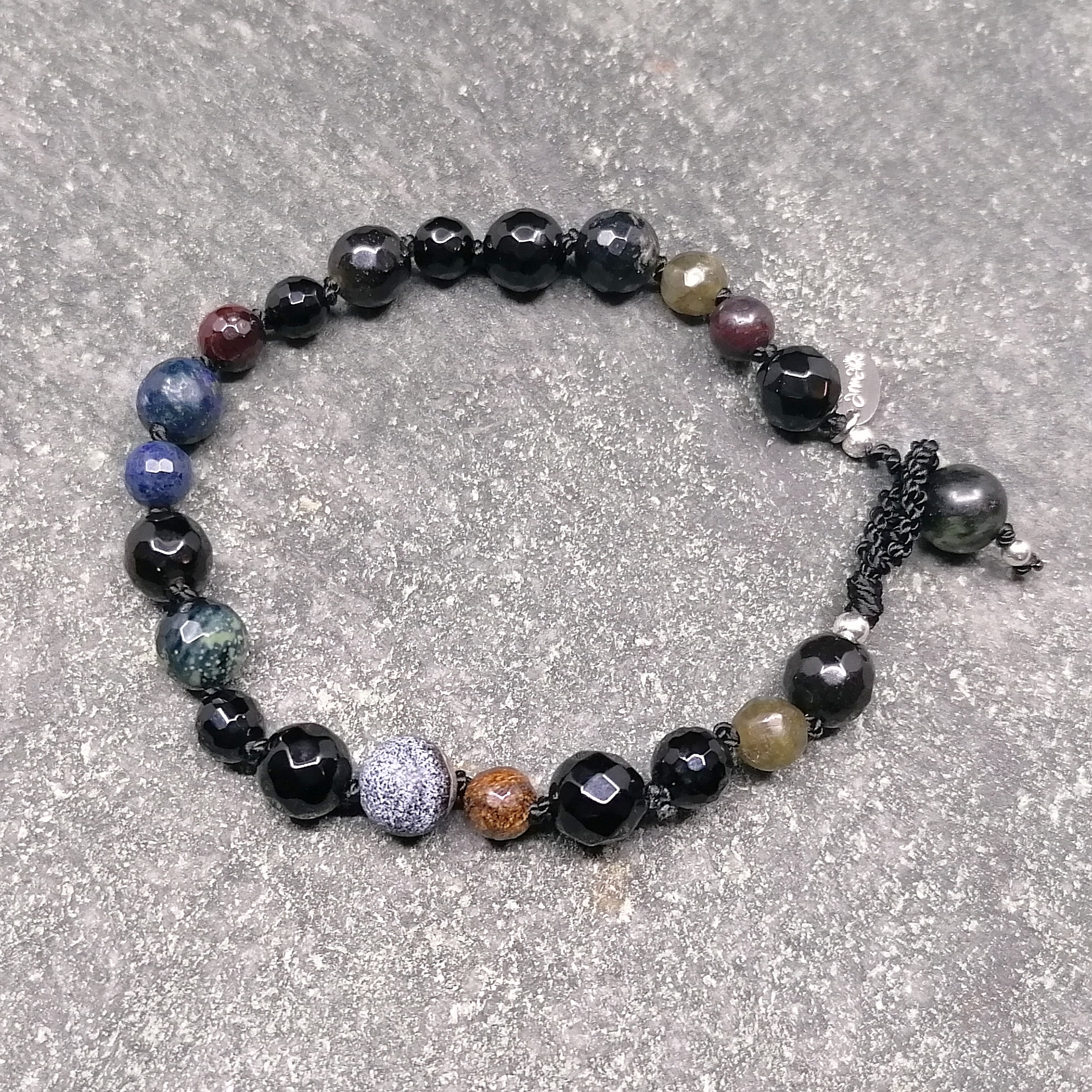 Edelstein Armband Kosmos, 22 Edelsteine handgeknüpft, gehäkelter Verschluss, Silber 925, 20cm